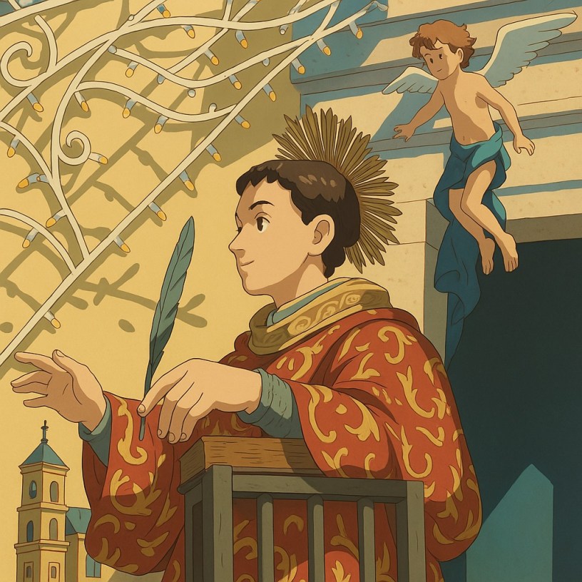 Il 10 agosto è il giorno di San Lorenzo. In un piccolo borgo del Sannio, in provincia di Benevento, di tanto in tanto, intorno a questa data, viene riproposta la vita del santo in forma di sacra rappresentazione. Questi versi vogliono essere il riassunto della vicenda del santi per come rappresentata nella piazza di quel paese.