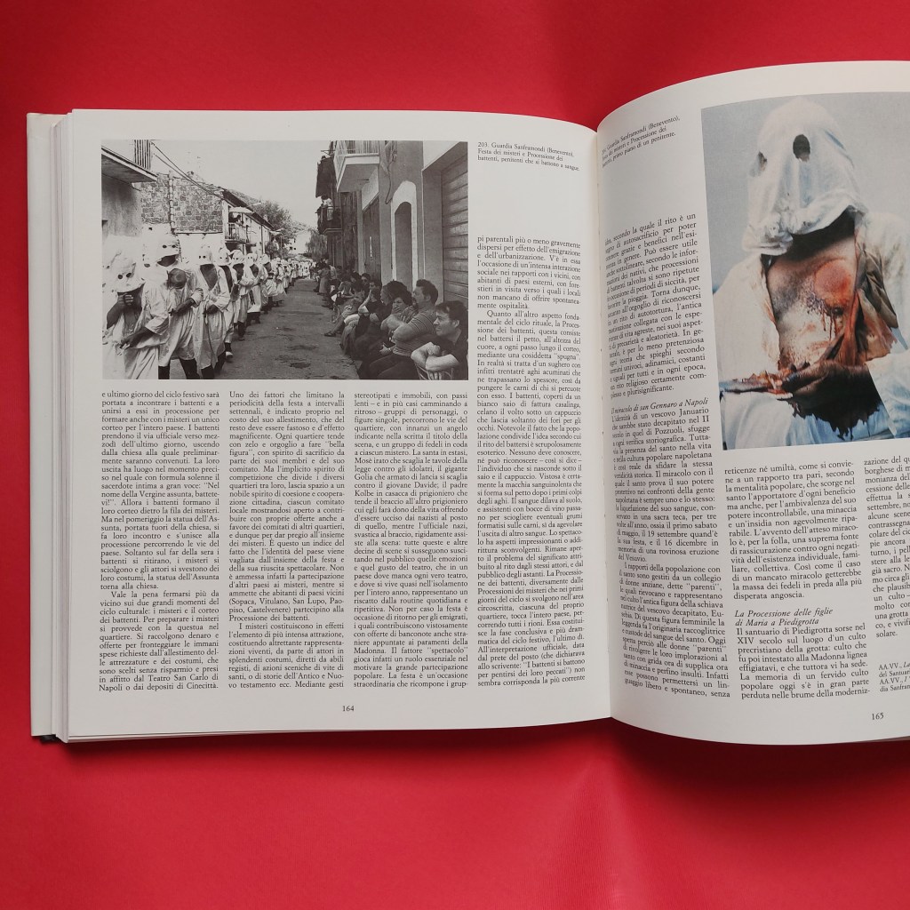 Il testo in sé è parecchio interessante, analizzando, regione per regione, le più importanti manifestazioni popolari del territorio, corredando il racconto con foto e immagini d’epoca. In particolare, alcune pagine sono dedicate alla Campania, a cura di Vittorio Lanternari. Delle dense colonne dedicate alla Festa guardiese, colpisce il linguaggio ricercato e l’approfondimento antropologico con il quale si guarda alla manifestazione.